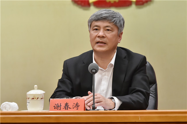 中央党史宣讲团成员、中央党校(国家行政学院)副校(院)长谢春涛作辅导讲座。